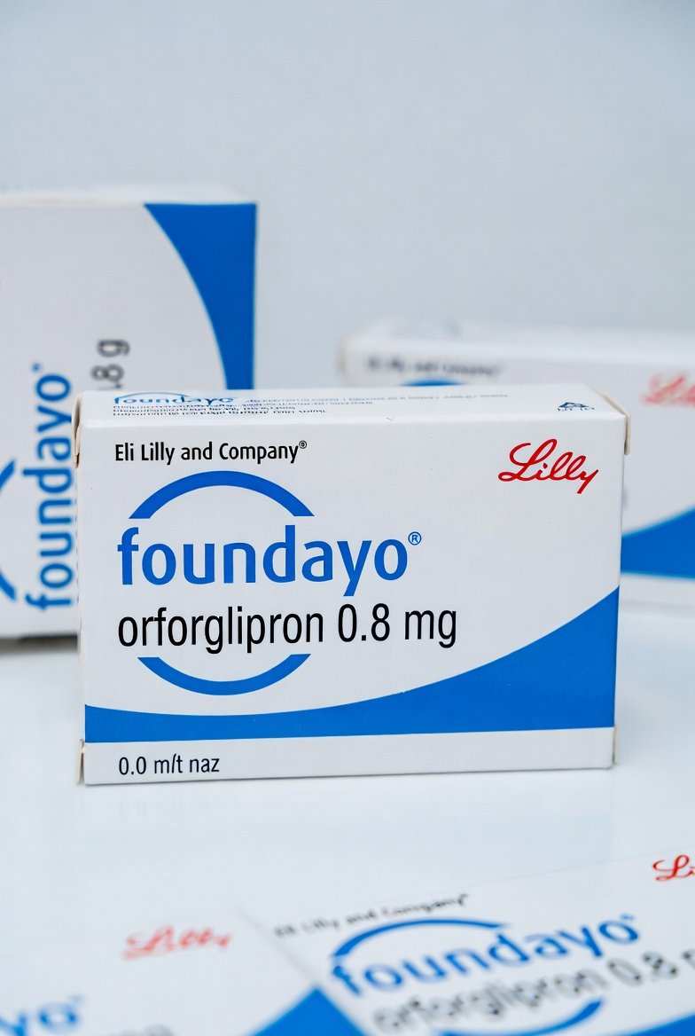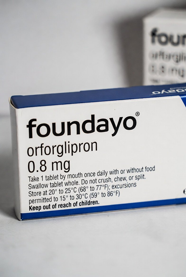 - Packaging: Foundayo Orforglipron box (sealed pharmaceutical-grade packaging)